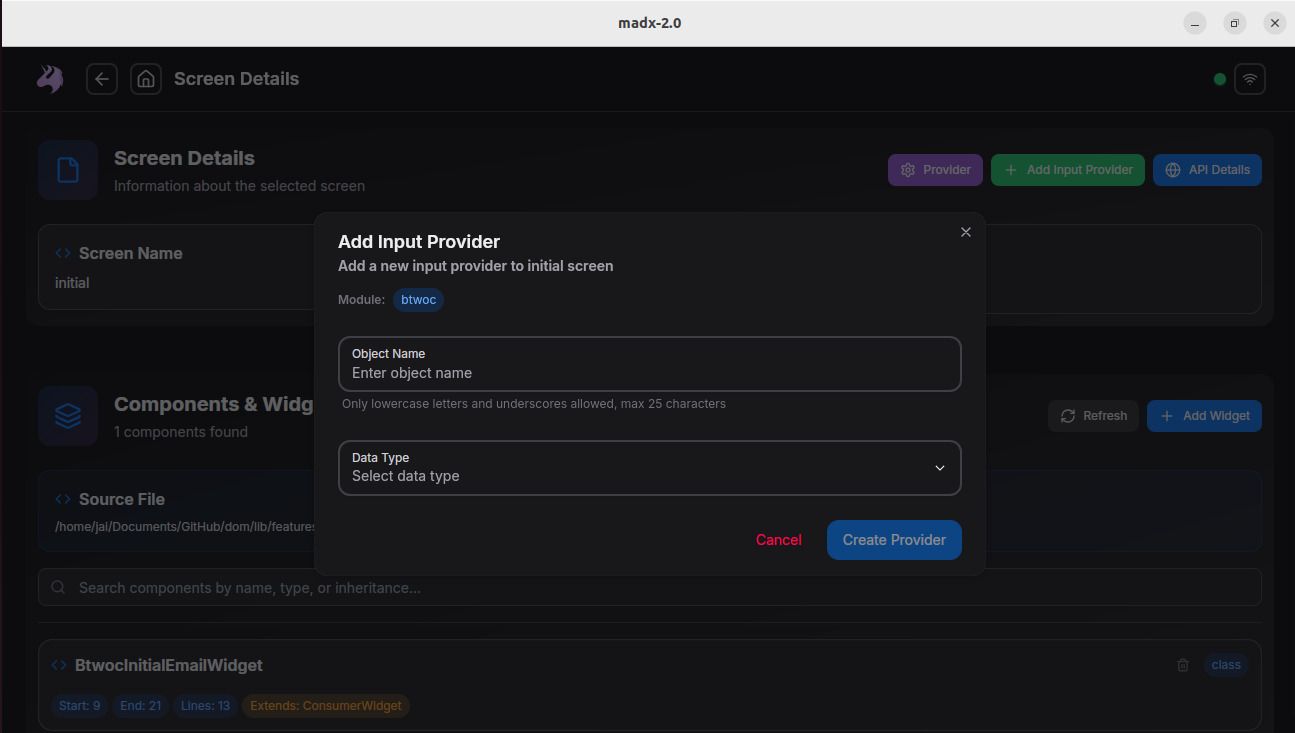 MADX automatically generates complete project architecture for Flutter and React — including optimized state management, API integration setup, and a scalable folder structure. Developers only need to focus on creating UI, while MADX handles the rest for a clean, maintainable, and production-ready codebase.